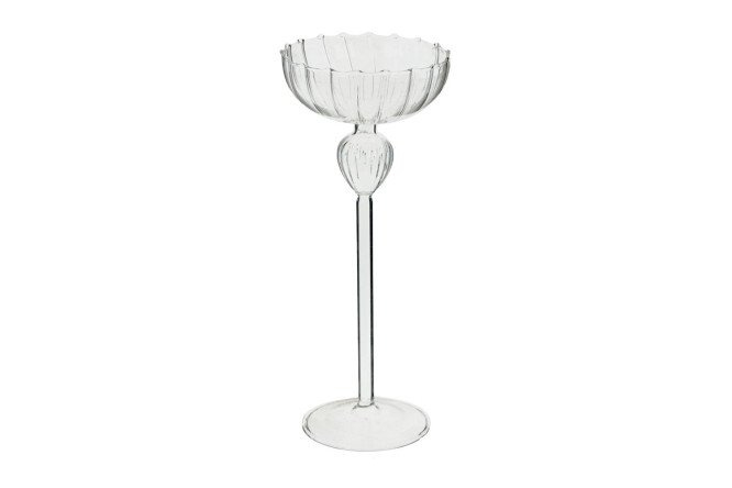 Original and sophisticated for one candle, you can easily decorate your home interior. With such a decorative element, a candlelight dinner will be filled with a solemn and festive atmosphere. The product is made of glass in the shape of a wine glass with a long stem. Candle diameter up to 10 cm.