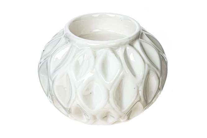 A ceramic candle holder for one candle will help create a cozy atmosphere. The white color and unusual shape make it simple and interesting at the same time. For a candle with a diameter of 4 cm.