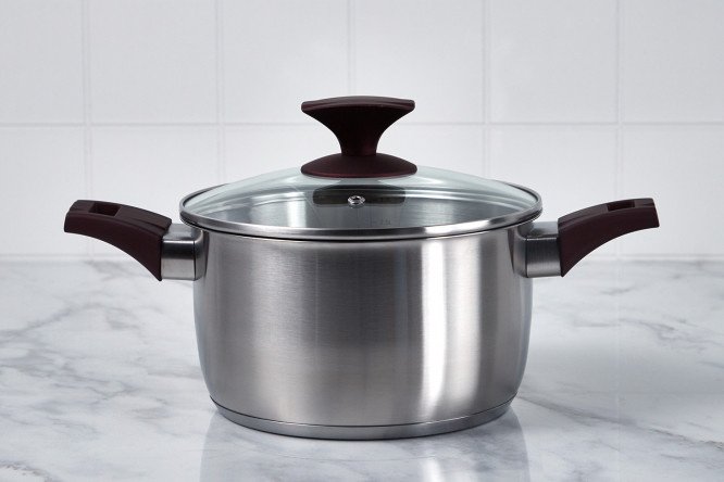 The Augusta Instant Pot with Lid is ideal for preparing tasty and healthy food. It is made of high quality stainless steel. This material does not absorb odors, is resistant to corrosion and is not afraid of scratches. The product is equipped with bakelite handles that do not heat up and do not slip. There is a measuring scale on the inner wall of the pan. The lid with a steam hole is made of heat-resistant glass, allowing you to observe the cooking process. And the metal rim protects the glass from chips and scratches.