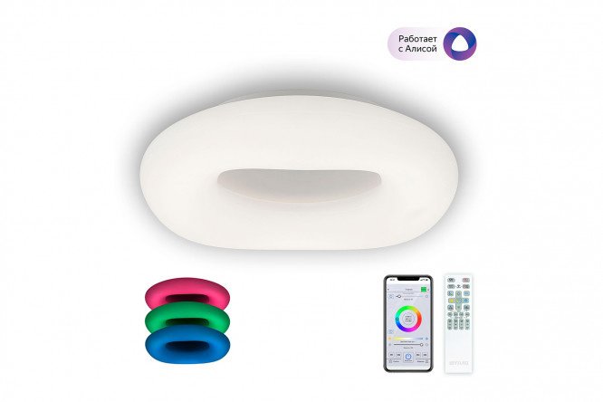 The Stratus Smart ceiling lamp with voice control and built-in LEDs will become a harmonious element of a modern interior. The model is compatible with any type of ceiling, has an original design and has many useful functions. The diffuser is made of an optical polymer in the shape of a ring; when the light is on, it appears as if it is floating in the air. The kit includes a remote control. You can also control the lighting using an application on your smartphone and a voice assistant from Yandex.