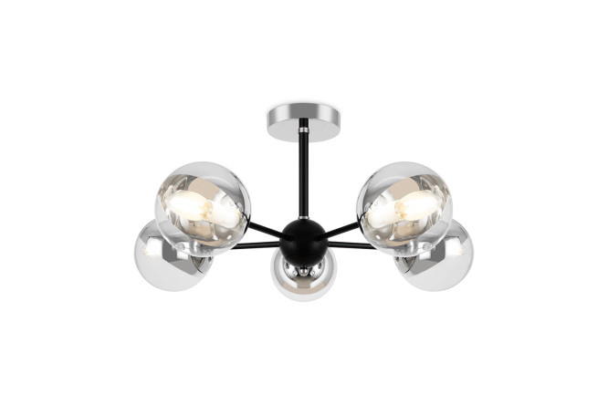 The FREYA Bom ceiling lamp is a spectacular model for a modern interior. Large round shades in a silver shade are in perfect harmony with black and chrome fittings. The use of lamps in the form of candles will enhance the decorative properties of the lamp and make it even more elegant.