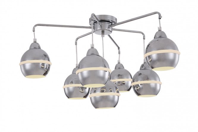 The FR5004CL ceiling lamp is capable of effectively illuminating a large area and combines high functionality and unusual design. The model is made in a modern style from chromed metal and acrylic, equipped with 7 spherical shades pointing down. The lamp will look impressive in the living room, bedroom or spacious hall. The outer surface of the lampshades is mirrored, which creates an interesting play of light and gives the interior originality.