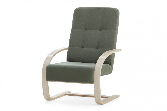 The Grace armchair with its shape evokes thoughts of a relaxed holiday – be it in a city living room or on a country veranda. The model resembles a cross between an ordinary chair and a rocking chair: it does not rock, but has a pleasant spring. The curved armrests and runner supports are two solid paired parts: they are connected by a flat crossbar to give the frame additional rigidity. The fabric cover is quilted with squares and decorated with decorative stitching. This model is available only in those upholstery options that are presented in our range.