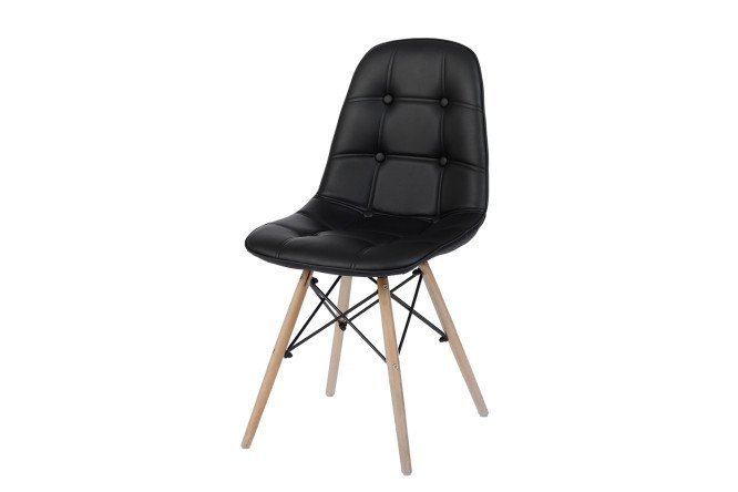 The Kokong chair is a worthy choice for creating an impressive and at the same time functional dining area in the kitchen or dining room. The appearance of the model is inspired by the heritage of famous American designers – the Eames couple. The kinship with their iconic work is emphasized by the graceful silhouette of the seat with raised edges and the metal “spider” frame that connects the beech supports and increases the stability of the structure. The upholstery is made of textured faux leather, quilted in squares and decorated with buttons.