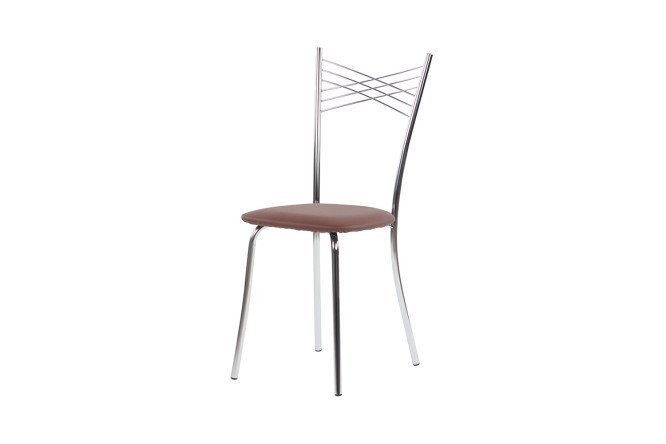 Durability, lightness, resistance to stains – these are the qualities that make a metal kitchen chair a worthy choice for the dining area in the kitchen. Faux leather upholstery does not absorb liquids; it is easy to remove greasy stains and brush away crumbs. The thin chrome-plated backrest creates a lightweight feel while providing firm support for a relaxed posture. The supports are equipped with plastic plugs to prevent scratches on the floor covering.