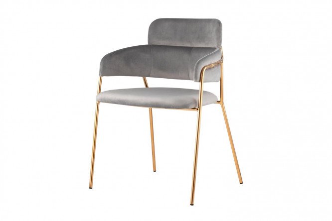 The Pauline chair with armrests is comfortable, practical and original in design. An unusually shaped back with high support, ergonomic armrests and a soft wide seat make the piece of furniture comfortable to use. The golden metal frame not only ensures the reliability and stability of the structure, but also serves as a spectacular accent to the model. The corduroy upholstery of the chair is wear-resistant and non-slip, soft and tactilely pleasant.