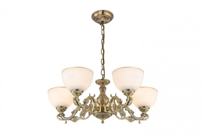 Adrian’s five-arm chandelier will provide a comfortable level of lighting in a spacious bedroom and will look great above a large dining table. The model has an interesting feature: it can be positioned with the shades up or down. In the first case, the light reflected by the ceiling will be softer and more diffused. The height of the fixation can also be adjusted: it can be varied, reducing the number of chain links, up to completely abandoning the suspension in favor of a ceiling mounting option.