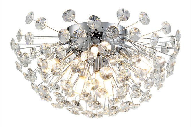 The CITILUX Betsy chandelier looks like a huge dandelion, but unlike a real plant that can fly around when the breeze blows, the lamp will delight you for many years. Thin rods ending in faceted crystal discs are attached to a metal body in the form of a hemisphere.