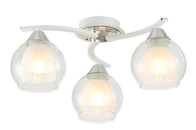 The Christie chandelier can be used for main lighting in a bedroom or living room, including in rooms with low ceilings. The visual lightness of the lamp is given by double shades directed downward: the inner bell-shaped diffuser is made of white frosted glass, the outer, spherical, is transparent. The chrome fittings are polished to a mirror smoothness: the rays reflected from its shiny surface create a soft pattern of light and shadow on the ceiling.