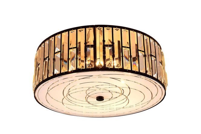 The Hermes chandelier from the famous European manufacturer Citilux is made in a modern, laconic style. The restraint of the cylindrical shape of the lamp is balanced by the elegance of the decor in the form of golden concentric circles and crystal plates. Rays of light, passing through the crystal faces, are refracted many times, filling the space with a scattering of flickering sparks. The wenge-colored fittings emphasize the strict design of the model, adding completeness to the look.