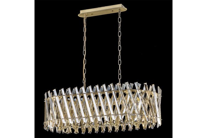 Crystal chandelier Citilux Ingvar CL334303 is made in the style of modern classics. The lamp body is metal, bronze color. The chandelier is ten-armed, with a large oval-shaped crystal lampshade. The crystal elements are large, with a modern cut, in a fashionable champagne color. The product uses 10 lamps with an E14 base, a maximum power for incandescent lamps of 60W (not included in the kit, purchased separately). The chandelier is suitable for rooms with both high and low ceilings, the length of the chain is adjustable during installation, the fastening type is a strip. Pendant chandelier Citilux Ingvar CL334303 is an excellent option for bright lighting of interiors decorated in modern and classic styles.