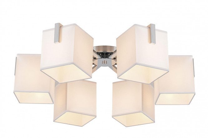 An elegant Stanley chandelier with a laconic design from the CITILUX brand will organically fit into interiors: art deco, modern, Scandinavian, classic. White prismatic shades with decorative edgings are made of durable, deformation-resistant textiles that soften and diffuse light rays well. The ceiling-mounted decorative trim and straight horns are made of matte chrome-plated metal. An excellent addition to the Stanley chandelier would be a fashionable sconce from the same collection.