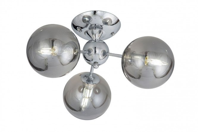 The Tommy chandelier will be a harmonious addition to the modern interior of a bedroom, living room or small studio. The model is distinguished by its original futuristic design, with a predominance of shiny surfaces and geometric shapes. The base is made of metal with a galvanic coating in chrome color. Closed spherical shades are made of transparent glass with a spectacular smoky tint. Thanks to the successful placement of light sources, the chandelier evenly illuminates the entire room.