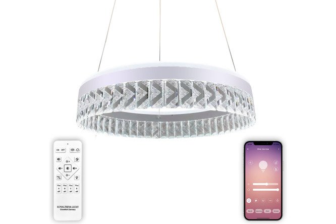 An LED strip located around the perimeter of the lampshade provides soft, diffuse lighting. The chandelier comes with a remote control. With it, you can adjust the brightness and color temperature, creating different lighting scenarios. The chandelier is equipped with a memory mode that saves the last operating settings.