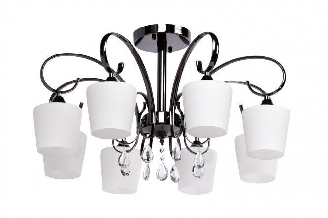 The light and airy ceiling chandelier “Shine” from MW-LIGHT is suitable for both home and office: its classic silhouette and neutral color palette will harmoniously fit into any room with any interior design. Nickel-plated metal base, frosted glass and transparent drops of decorative crystal pendants are three components of one masterpiece.