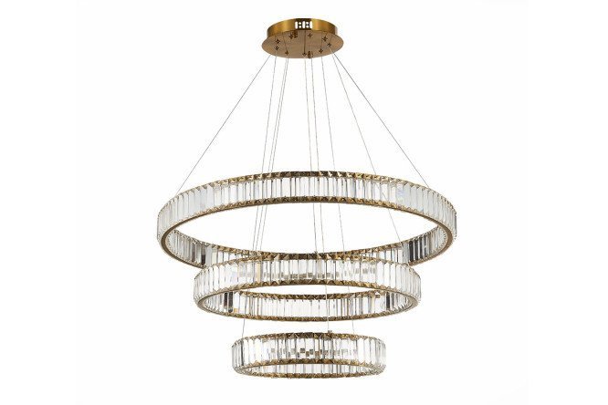 The laconic and universal shape of the lamp in the form of a ring, combined with large crystals and the noble brass color of the fittings, makes the Tivoli collection an example of modern classics. The lamps are suitable for interiors of different styles and configurations thanks to a wide range of sizes. Built-in LEDs provide efficient and economical lighting. The color temperature is the most comfortable for the eyes.