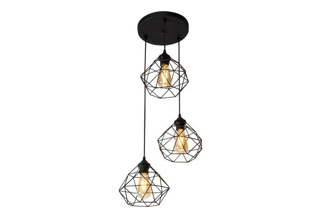 The lamp is a bright representative of the loft style, which is characterized by monochrome, clear lines, and brutal materials. The role of lampshades is performed by metal frames in the form of complex polyhedra.