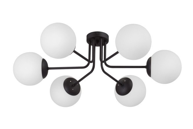 The ceiling chandelier Vitaluce series V4995 is made in the Art Deco style, but can perfectly complement interiors of various styles. An ideal lighting source in a room with low ceilings. Designed for 6 lamps with a power of 40W for effective room lighting. Bulbs are not included, please be sure to purchase them.