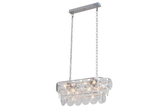 The pendant chandelier Vitaluce series V5834 in chrome color is made in a modern style. It is possible to adjust the height of the chandelier. Bulbs are not included, please be sure to purchase them.