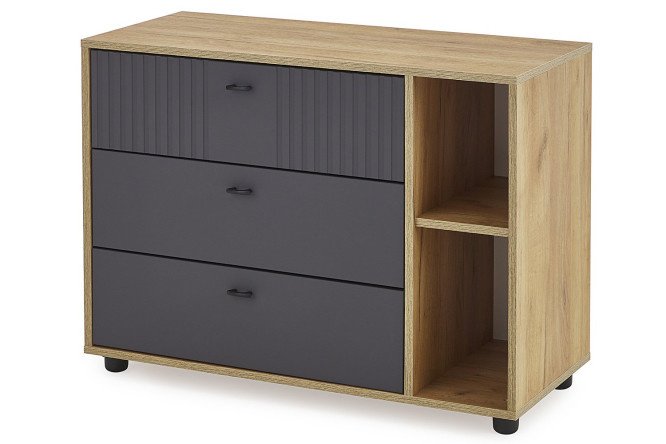 The Barcelona chest of drawers with 3 drawers will blend harmoniously with the interior of a living room, dining room, bedroom or hallway in a modern style. The chest of drawers is divided into two sections. On the right are two deep open niches for everyday small items and decorative items. On the left are […]