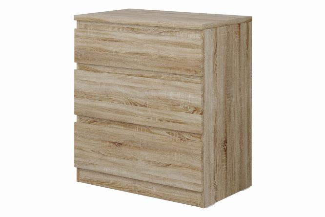 The Castor chest of drawers once again convinces us that elegance lies in simplicity. Its minimalist, sleek design not only allows this piece of furniture to easily fit into any interior, but also makes it very functional and practical. Spacious drawers on ball guides are easy to open by pressing, the solid base provides stability, and the absence of gaps between it and the floor prevents dust from collecting. Thanks to its universal dimensions and shallow depth, the chest of drawers does not look bulky even in small spaces. High-quality chipboard material lasts a long time and is easy to maintain.
