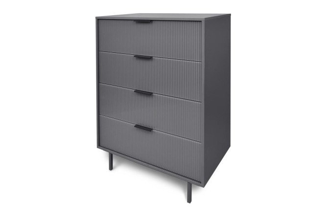 The Fleur chest of drawers is a functional solution for organizing storage in an apartment or office. The model is equipped with four drawers with hidden guides and a closer function. It will fit compactly even into small spaces, and the high metal supports will allow you to clean the premises using a robot vacuum cleaner.
