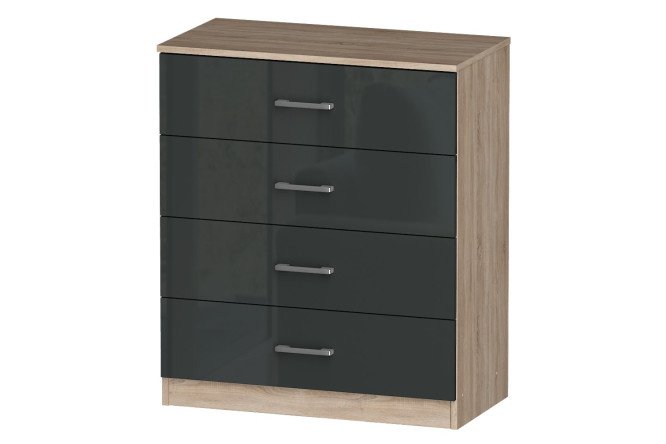 The Life chest of drawers will be a spectacular addition to other furniture from the collection of the same name. This is a stylish model, the design of which uses different shades of facades and housing, harmoniously combined with each other. MDF facades with a glossy finish and stylish handles look very elegant.