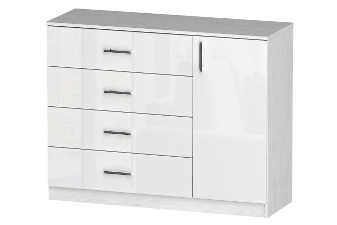 The Life chest of drawers with elegant glossy MDF facades will become a convenient and spacious storage system for household appliances, boxes with accessories and baskets with handicrafts or trunks with linen.