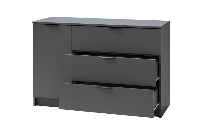 A universal solution for the home. Thanks to its laconic design, it can be used to decorate any living space – living rooms, bedrooms and children’s rooms. There is also a place for him in the hallway. The chest of drawers will provide the convenience of storing many useful things. The Loft chest of drawers is very spacious; its deep drawers are complemented by modern profile handles. A pleasant-to-touch coating, reliable fittings, a stable base, a wide top lid – all this can be called the main advantages of the presented piece of furniture. Such furniture will look good in a modern interior.