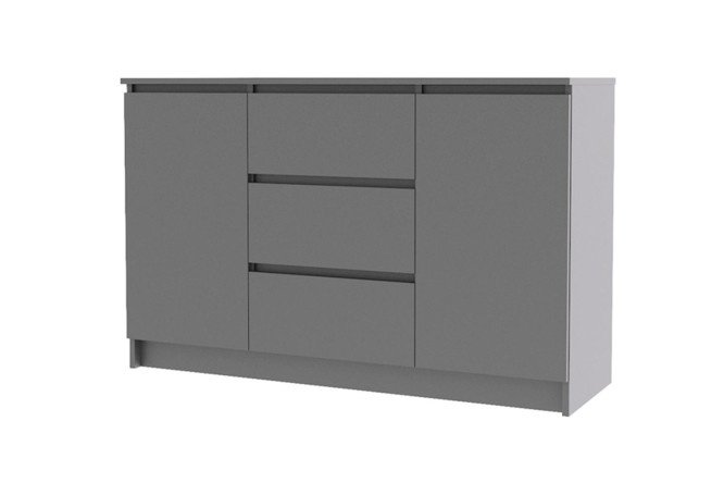 The Mori chest of drawers with two spacious compartments behind hinged doors and drawers will allow you to bring order to your bedroom or living room. On closed shelves you can store boxes of things, household appliances, and table linens.