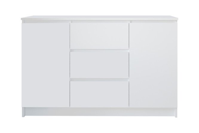 The Mori chest of drawers with two spacious compartments behind hinged doors and drawers will allow you to bring order to your bedroom or living room. On closed shelves you can store boxes of things, household appliances, and table linens.