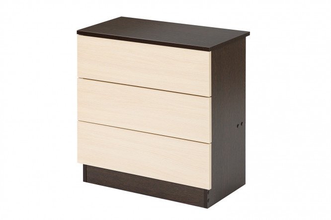 Chest of drawers Uno-25 made of laminated chipboard in wenge, milky oak color. A closer for chest of drawers can be purchased additionally.