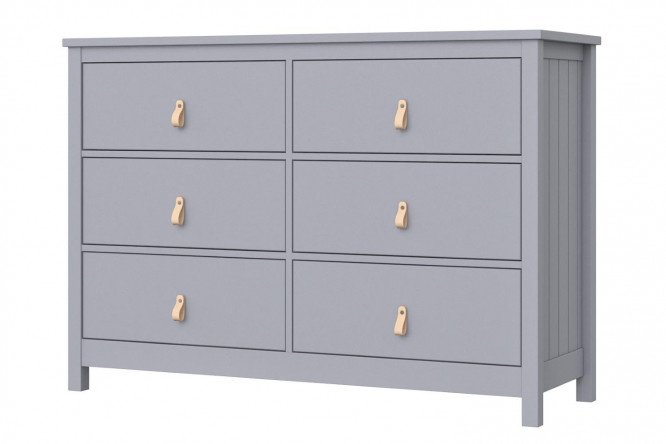 Wood chest of drawers with 6 drawers has a durable frame made of solid beech, a body made of safe MDF covered with enamel. Six drawers on silent guides with closers. Handles made of genuine leather.