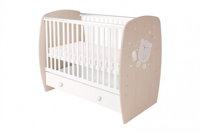 The Polini kids French 710 Teddy crib in a classic design and calm color scheme meets all European requirements for the quality and safety of children’s furniture. In production, solid birch and laminated chipboard produced by Kronospan (Austria) are used. For the convenience of parents and the safety of the baby, the bed of the crib can be installed at 3 height levels. This model has a spacious drawer for storing things. Each crib is equipped with silicone pads, “rodents”, and sides. This model is part of the French furniture collection, a wide variety of modern decors of which will allow you to create a unique interior for a child’s room. Advantages: