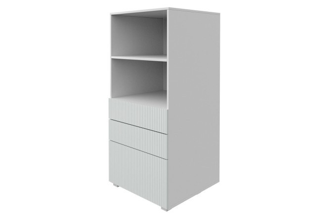 The facades do not have drilling for a certain size and type of handles. You can choose from different handle options for them. Additionally, you can purchase high legs: different leg options to choose from.