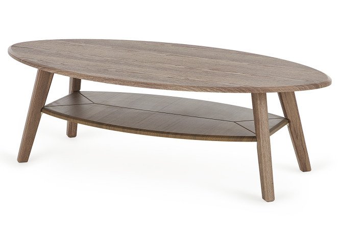 Surfing coffee table made of solid wood, MDF in acacia, walnut colors.