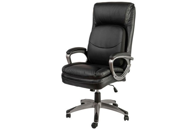 The classic computer chair MF-3015 in black has a comfortable soft back and eco-leather upholstery. The high back made of dense foam allows you to work comfortably. This model is perfect for a modern office interior or home office. The top-gun swing mechanism and durable plastic cross can withstand loads of up to 120 kg.