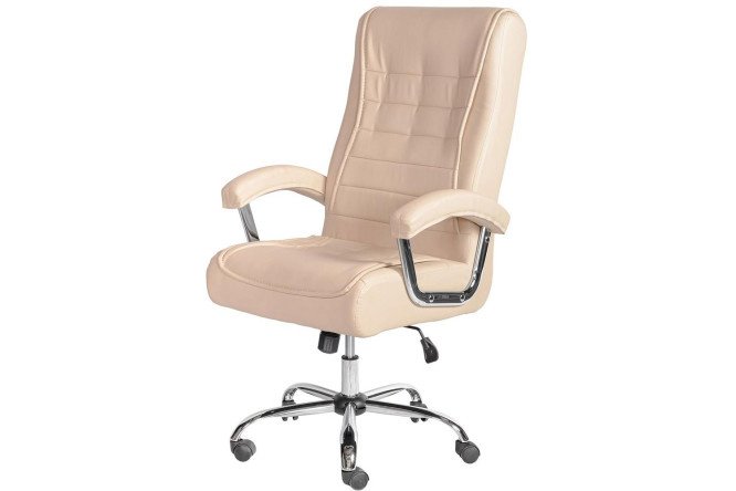 The “strict” executive chair MF-3036 is made in a classic style: elegant upholstery made of beige eco-leather, chrome-plated crosspiece, armrests with soft pads. The upholstery will last a long time. The deep seat allows you to sit in a way that is comfortable for you. Rollers provide high maneuverability. High-tech padding material allows you to rest and work in equally comfortable conditions. The color of the upholstery will suit any office interior.
