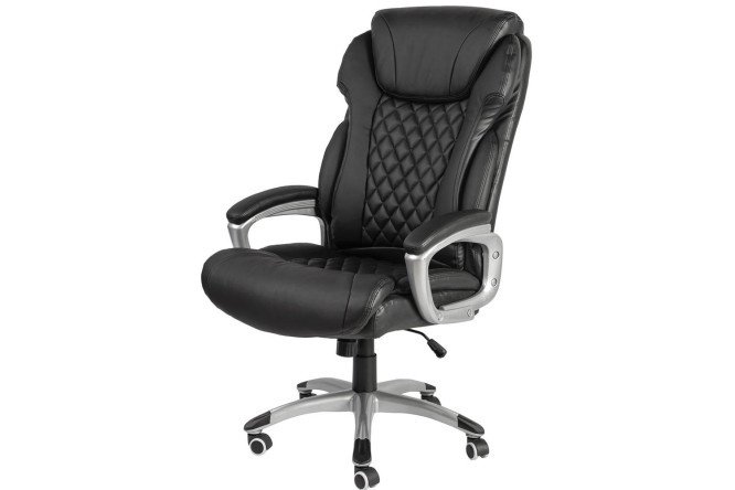 The laconic office chair MF-3047 with a base made of durable gray plastic and black upholstery has a comfortable soft back with decorative stitching, eco-leather upholstery, soft headrest and armrests. You can work comfortably with this chair both at home and in the office. The strict design is perfect for an office interior. Top gun swing mechanism, high back, high density foam padding. The base can withstand loads of up to 120 kg.