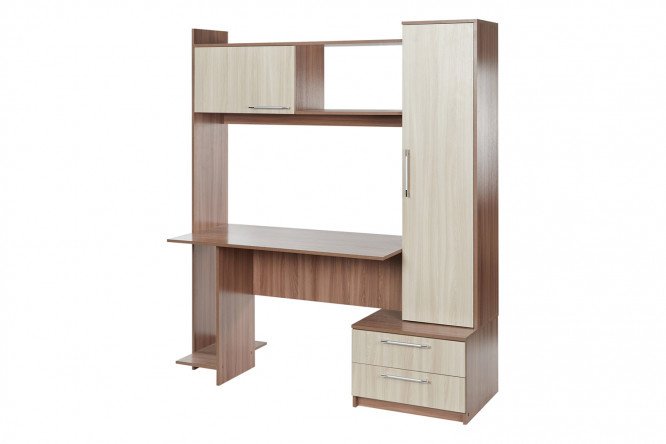 The Denver computer desk is a full-fledged workspace where it is so easy to keep all the necessary tools in perfect order. Despite its compactness, the model is a real mini-office, where there is room for papers and office supplies, a computer with all the necessary peripherals, books and even cute trinkets that please the eye. The computer desk is made of modern eco-friendly materials, the body is tinted in the color of Sonoma oak, the fronts of closed compartments and drawers are classic white with comfortable elongated metal handles. Assembly is possible only on one side (as in the photo).
