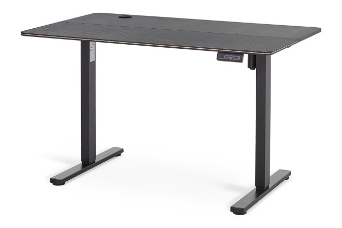 The Stryker computer desk is equipped with an electric drive – you can choose the height of the tabletop yourself. Raising the tabletop to its maximum height will allow you to work at it while standing. The electric drive is conveniently located, which makes it possible to adjust the table height at any time. There is a hole on the tabletop for wires. Black color, simple and compact design will help the table fit into any interior. The table also has a hidden hook for storage.