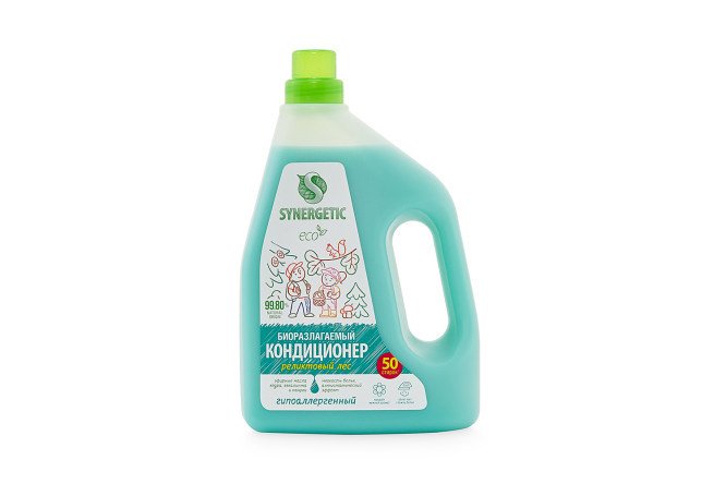 Biodegradable fabric softener SYNERGETIC “Relic Forest” is a highly effective product that gently cares for all types of fabric, including delicate ones, and gives special softness and tenderness to linen after washing. Hypoallergenic conditioner-rinse aid neutralizes detergent residues on fabric, helps maintain fabric structure, protecting fibers from wear and damage. The product has an antistatic effect. A complex of plant K-tensides ensures easy ironing of laundry after washing and drying. A hypoallergenic perfume composition with essential oils of cedar, eucalyptus and patchouli gives the linen a delicate and pleasant aroma. Suitable for hand and machine washing, completely rinsable from fabrics. Biodegradable components do not harm the microflora of septic systems.