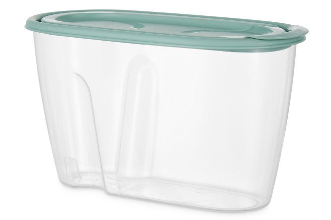 Idea polypropylene container is designed for bulk products: cereals, sugar, pasta. The accessory can also be used to store washing powder. Thanks to their flattened shape and special finger grooves, containers can be easily removed from shelves with one hand. If the height of the kitchen cabinet allows, the products can be stacked to save space. The lid fits tightly to the body – if the container falls, the contents will not spill. A convenient flap valve is provided to pour out the required amount of product.