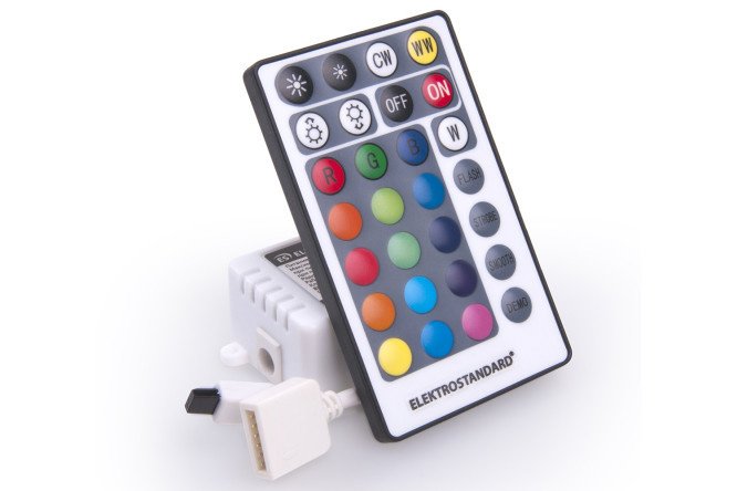 The ELEKTROSTANDARD LSC 022 controller is suitable for LED strip 5050+2835+2835 90Led 16W IP20 RGBWW. Included is a remote control with a range of 5 m. Total load power 12 V – 24 W, load 24 V – 48 W, output voltage DC 12/24 V.