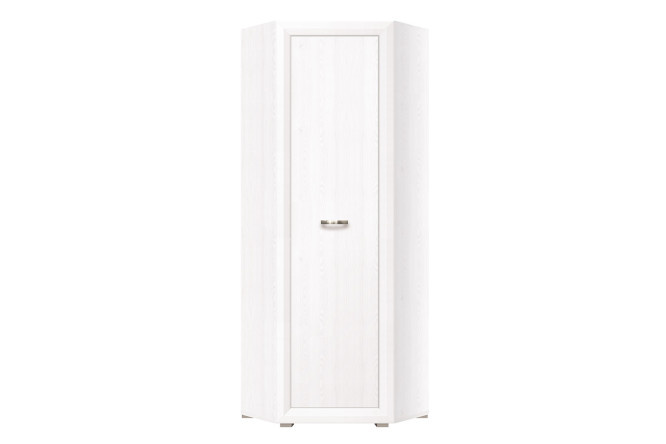 The Malta corner wardrobe with a hinged blind door is a practical solution for a small hallway, bedroom, living room or insulated balcony. It can serve as a storage system for a staff rest room in an office or in a mini-hotel. The compact and spacious Malta wardrobe helps to rationally use a free corner or niche, organize the space of a room with a non-standard layout and can replace a small dressing room. The frame and facades of the furniture are made of laminated chipboard and MDF. A protective edge around the perimeter of each part prevents the penetration of moisture and the appearance of chips. Inside the cabinet there are two rods for storing clothes, a shelf and five deep niches. The door can be hung on the right or left using hinged hinges that provide smooth and silent opening and closing. The principle of minimalism in furniture decor is supported by comfortable metal handles of simple shape.