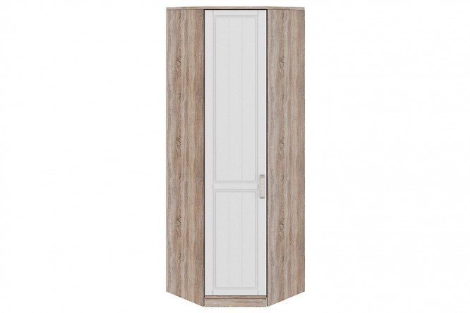The spacious and elegant corner wardrobe Provence is a section of the large collection of the same name. It can be used as an end or connecting link in a furniture wall, as well as as an independent unit. Like any corner furniture, the closet saves space in the room and allows you to better organize it. Suitable for a modern stylish interior, devoid of pretension. The body of the model is made in the color of natural wood, the beautiful frame facade is made of cream-colored chipboard