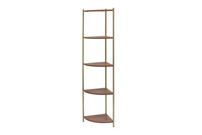 The ALLEN gold shelving unit with laminated chipboard shelves attracts attention with its elegant design and functionality. The sophisticated combination of a gold frame and wooden shelves will allow you to place the rack in a modern interior.