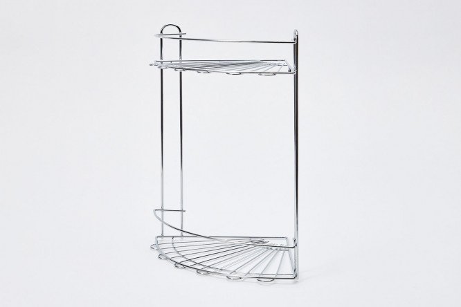 Corner 2-tier wall shelf Lite made of metal, silicone in chrome color.