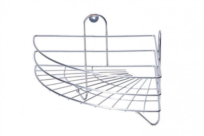 Corner shelf with hooks SWR-18-01 made of metal material in chrome color.