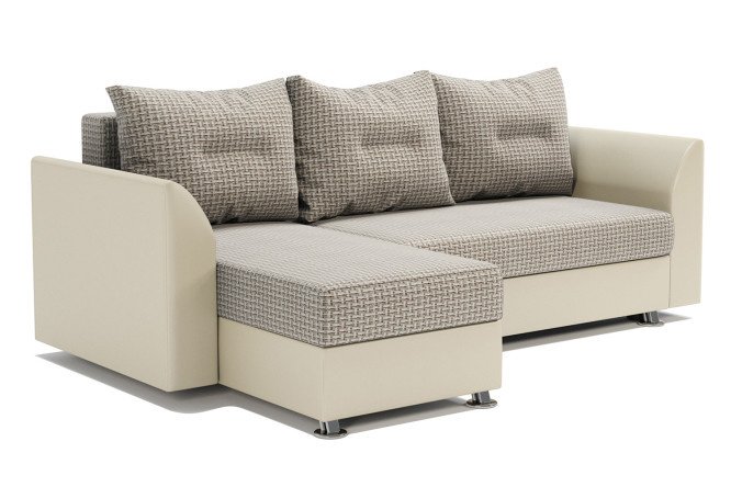 The corner sofa Aria with comfortable volumetric pillows will provide a comfortable rest. The spacious drawer is convenient for storing bedding. The strong solid wood frame guarantees durability. This model is only available in the upholstery options that are presented in our range.